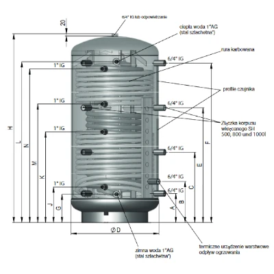 Zbiornik buforowy KWS-R2 może być wyposażony w grzałkę elektryczną, która umożliwia zoptymalizowanie pracy systemu fotowoltaicznego oraz efektywne magazynowanie energii cieplnej (z wyjątkiem modelu 1500 litrów). Dzięki temu możesz wykorzystać energię odnawialną i dostosować działanie systemu do swoich indywidualnych potrzeb.