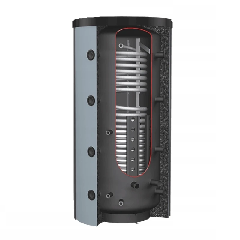 Zbiornik buforowy KWS-W pozwala na wykorzystanie bufora jako efektywnego magazynu ciepła oraz podgrzew ciepłej wody dzięki karbowanej wężownicy ze stali nierdzewnej. Ten innowacyjny system zapewnia niezawodne i wydajne dostarczanie ciepłej wody użytkowej.