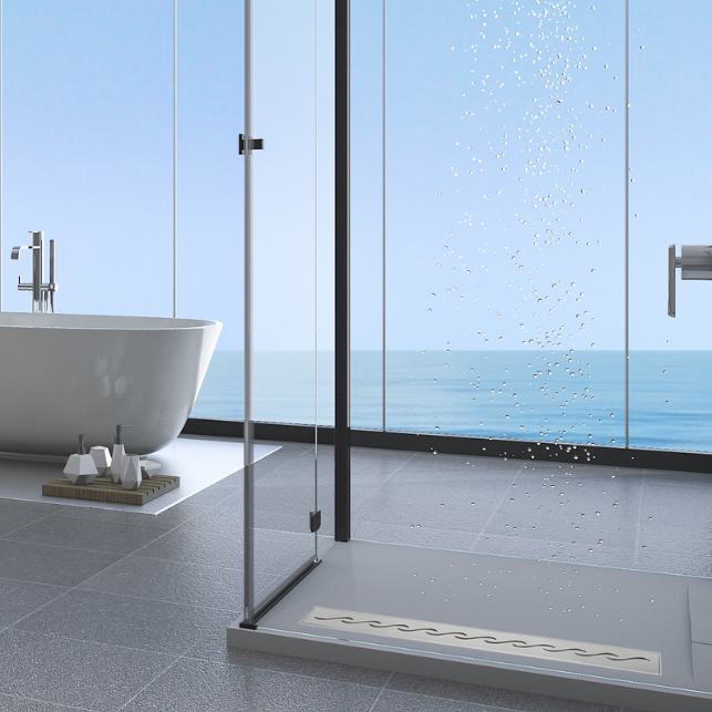 Odpływy linioweDECOR WAVEto nowoczesne i jednocześnie subtelne wzory podkreślają niecodzienny charakter każdej łazienki, nadając jej specyficznego wytwornego szyku. Monolityczny korpus znajwyższej jakości stali nierdzewnej, brak plastikowych połączeń oraz części ruchomychgwarantuje wiecznotrwałą szczelność.