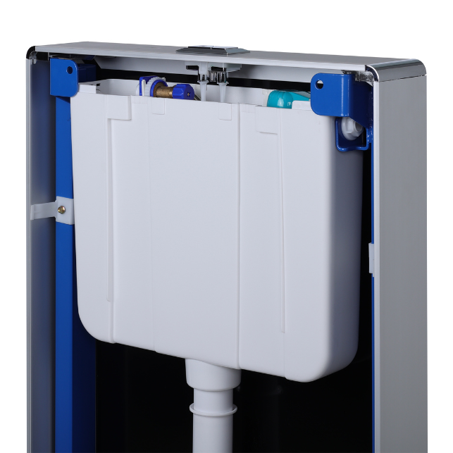- Stelaże natynkowe montuje się na ścianie. Naścienny system pozwala na zakrycie zbiornika wypełnionego wodą, nadaje przestrzeni minimalistyczny wygląd oraz kryje nieestetyczne elementy montażowe.
