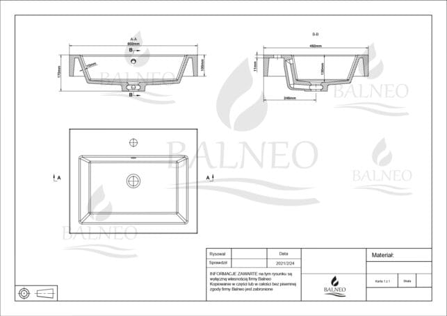 BALNEO ROXY UMYWALKA NABLATOWA 60X50 BIAŁA KONGLOMERATU
