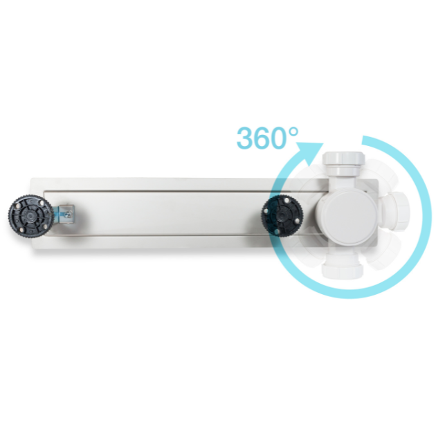 Ważnym argumentem przemawiającym za wyborem odpływuONE LINE SLIMjestobrotowy syfon(360 stopni), który dajemożliwość ustawienia rury odpływowej w dowolnym kierunku. Takie rozwiązanie znacznieułatwia montażi podłączenie do instalacji sanitarnej. Ze względu naniewielką wysokość montażu – tylko 57 mm, odpływ można zainstalować prawie w każdym budownictwie łącznie z wielką płytą.Przepustowość odpływu wynosi 49 litrów wody na minutę. Dzięki takiej przepustowości może być zastosowany do większości baterii natryskowych.