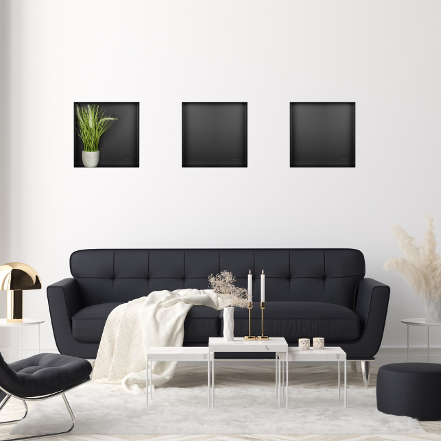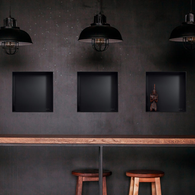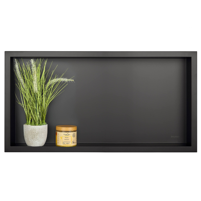 BALNEO WALL BOX NO RIM BLACK PÓŁKA WNĘKOWA BEZ KOŁNIERZA 30x30x10cm ZE STALI NIERDZEWNEJ SZCZOTKOWANEJ