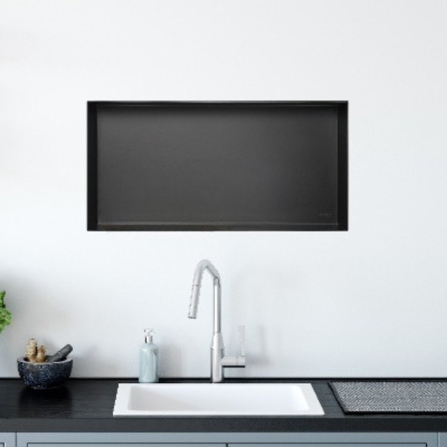 WALL-BOX No Rim to również alternatywa dla półek wnękowych wykonywanych z płyt gipsowo-kartonowych. Płyty g/k nie są materiałem dedykowanym do wykonywania półek wnękowych a w szczególności tam gdzie mamy do czynienia z bardzo dużą wilgotnością (np: kabina prysznicowa). Półki wykonane z płyt g/k nie są wodoszczelne, co może powodować przeciekanie wody do wnętrza ściany poprzez wypłukujące się fugi. Wykonywanie tego typu półek jest bardzo kosztowne, problematyczne oraz pracochłonne.