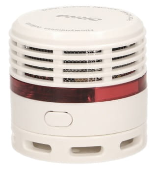 BATERYJNY CZUJNIK DYMU 9V BSI ORNO Bezprzewodowy mini czujnik dymu przeznaczony do stałego monitorowania pomieszczeń pod kątem występowania dymu oraz wczesnego wykrywania pożaru. Posiada czujnik fotoelektryczny, wykrywający widzialny dym powstający w początkowym stadium pożaru. Po wykryciu zagrożenia uruchamia się alarm optyczny (LED) oraz akustyczny (do 85 dB). Dane techniczne: Rodzaj zasilania: zintegrowane, dożywotnie zasilanie Bateria w zestawie: tak Rodzaje wykrywanych zagrożeń: dym Typ czujnika: fotoelektryczny Wyświetlacz: nie Przycisk TEST: tak Wyciszenie alarmu: tak Sygnalizacja niskiego stanu baterii: tak Sygnalizacja awarii: tak Sygnalizacja końca okresu eksploatacji: tak Poziom głośności alarmu (dB): ≥85/3m Żywotność sensora: 10 lat Spełniane normy: EN 14604:2005/AC1:2008 Wymiary (szer./wys./gł. [mm]): ø45 / 42 Inne cechy: certyfikat BSI