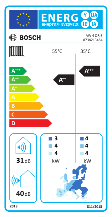 4 / 5 / 7 – przybliżona moc grzewcza A-7/W35
