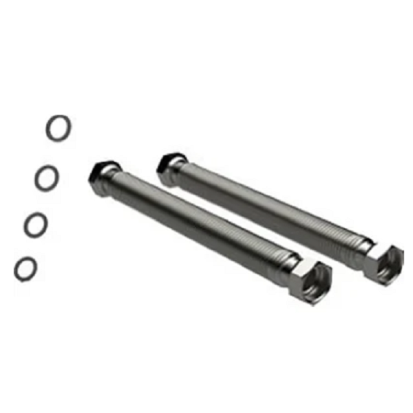– 2 x przedłużane karbowane węże ze stali nierdzewnej 1”