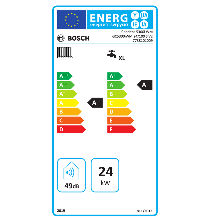 - Klasa energetyczna A (klasa A+ z regulatorem CW400 lub z zestawem regulatora EasyControl CT200)