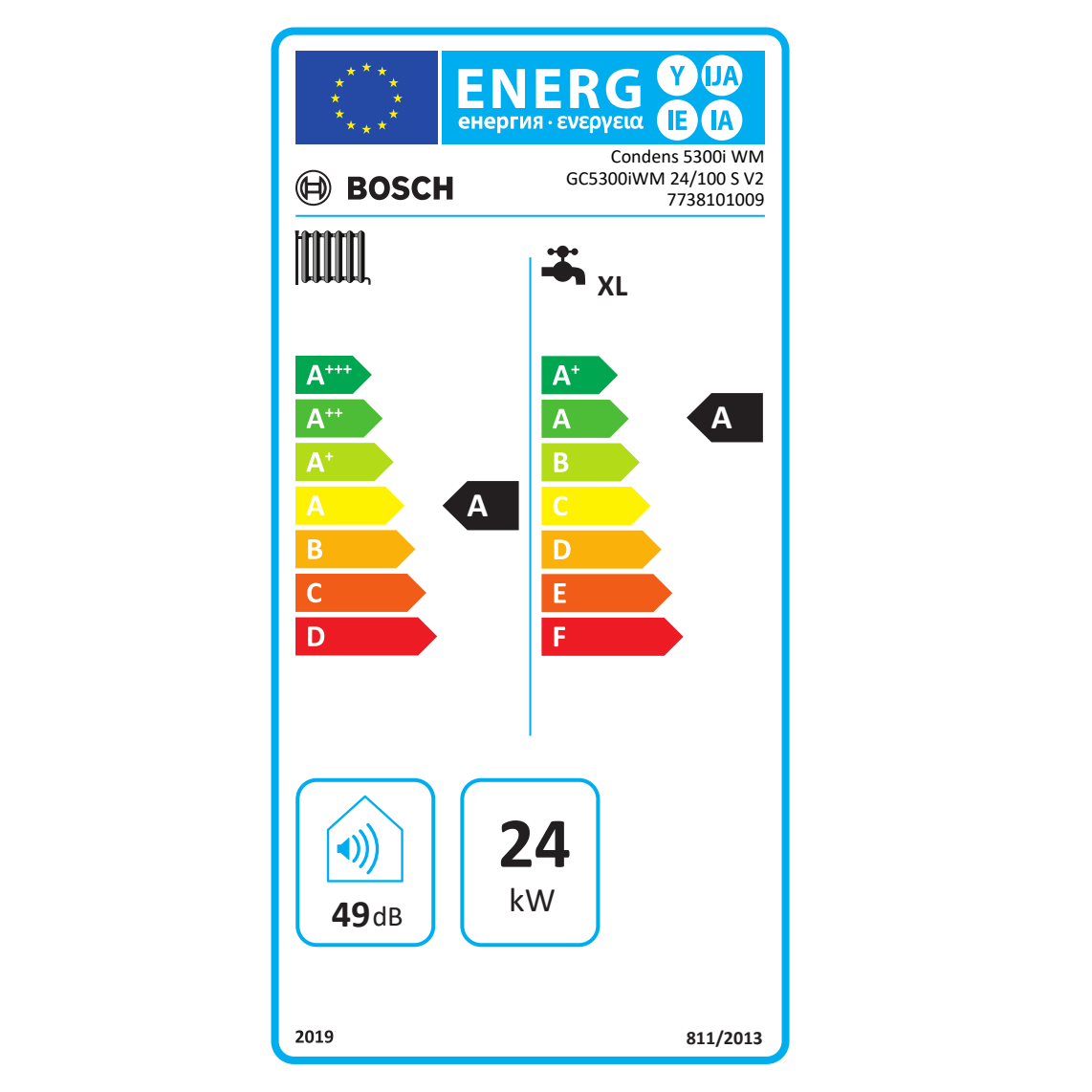 - Klasa energetyczna A (klasa A+ z regulatorem CW400 lub z zestawem regulatora EasyControl CT200)