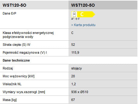 - w dostawie z czujnikiem temperatury wody w zasobniku