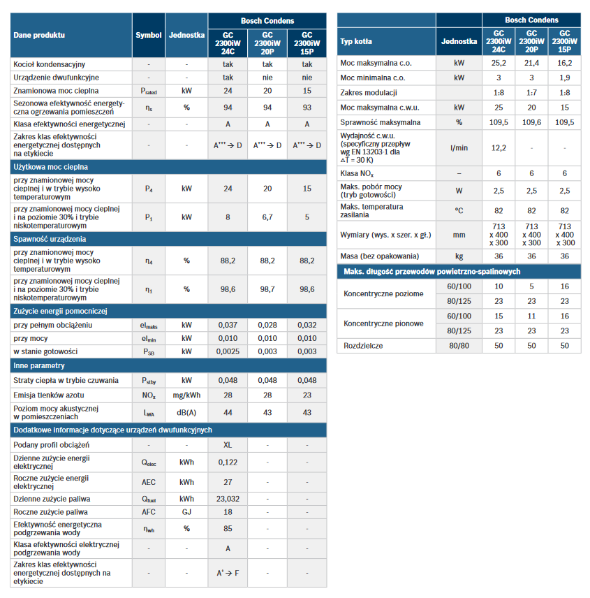 Bosch Condens GC2300iW to dwa modele jednofunkcyjne i jeden model dwufunkcyjny.