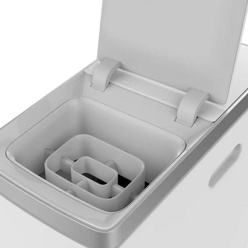 - Podczas uzupełniania soli wbudowane sito zapobiega ewentualnym zanieczyszczeniom