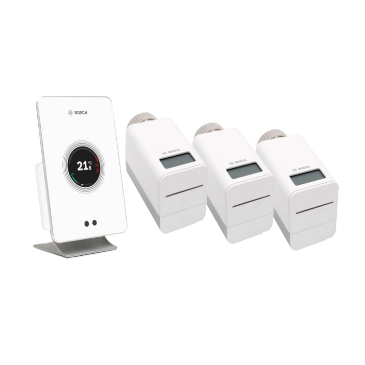 BOSCH ZESTAW REGULATORA EASYCONTROL CT200 BIAŁY Z TRZEMA ZDALNIE PROGRAMOWAMYMI GŁOWICAMI TERMOSTATYCZNYMI