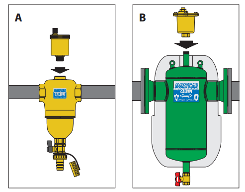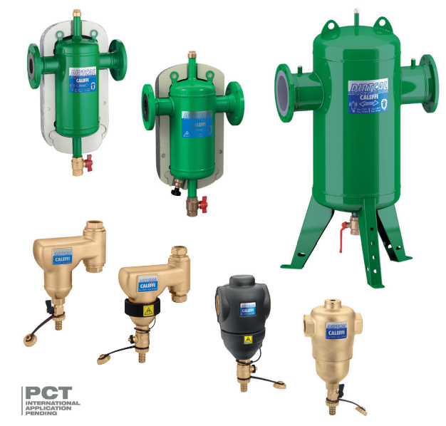 Urządzenia tego typu oddzielają zanieczyszczenia wzamkniętych instalacjach centralnego ogrzewania, głównie cząstki piasku irdzy. Zanieczyszczenia gromadzone są wkomorze odużej pojemności, co zmniejsza częstotliwość czyszczenia, ich usunięcie może być przeprowadzone podczas normalnej pracy instalacji. Wersja zmagnesem przeznaczona jest do oddzielenia związków ferromagnetycznych zinstalacji. Urządzenie jest zdolne do usuwania nawet najmniejszych cząstek, przy tym nie powoduje wysokich strat ciśnienia winstalacji. Wersje kołnierzowe DIRTCAL iDIRTMAG (średnice od DN 50 do DN 150) są wyposażone wwstępnie formowane łupki izolacyjne, aby zapewnić idealną izolację termiczną. Urządzenia mogą być stosowane winstalacjach grzewczych ichłodniczych.