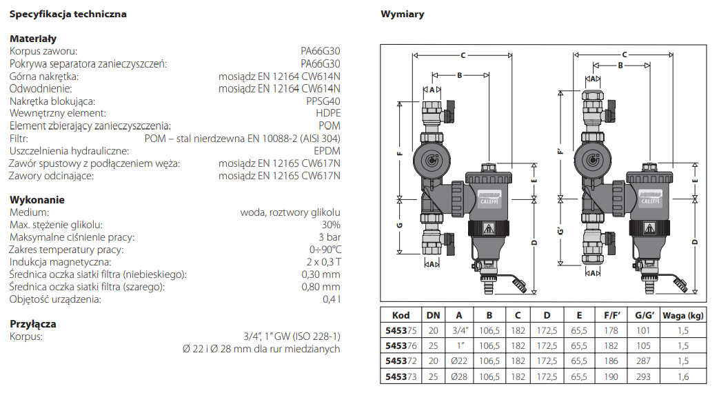CALEFFI DIRTMAGPLUS 1″ URZĄDZENIE WIELOFUNKCYJNE Z SEPARATOREM MAGNETYCZNYM I FILTREM (przyłącze ruchome gwintowane) 545376