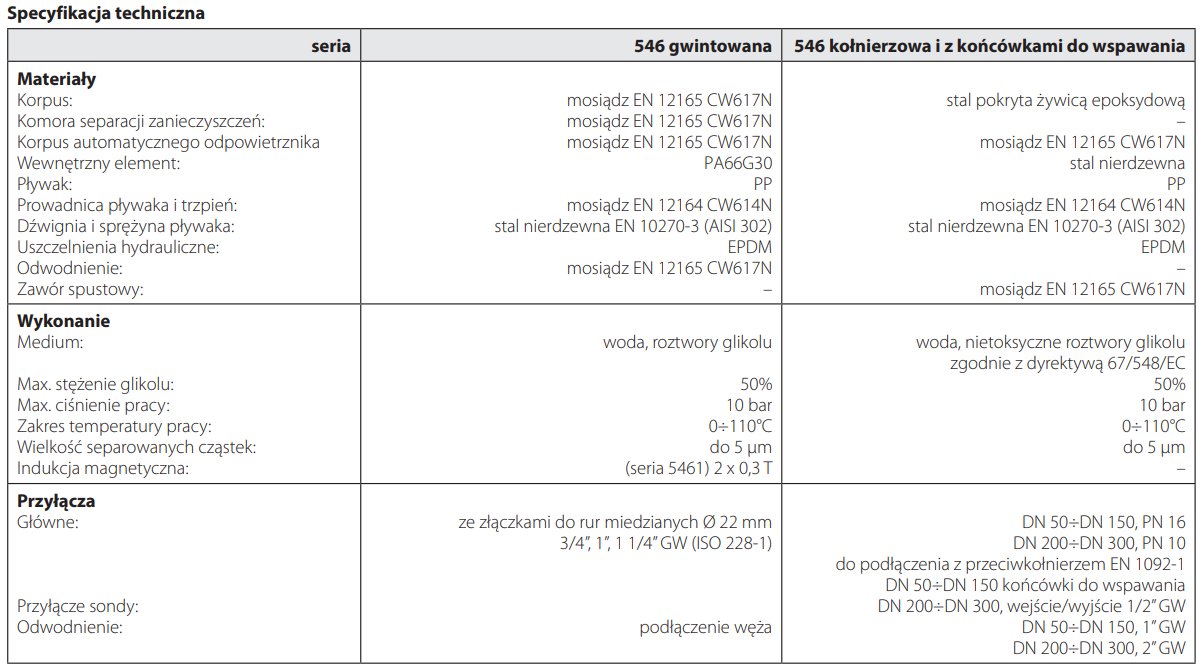 Separatory powietrza-zanieczyszczeń wykorzystywane są do ciągłego usuwania powietrza izanieczyszczeń zinstalacji centralnego ogrzewania ichłodzenia. Zawory ztej serii posiadają duże zdolności upustowe. Separatory usuwają wsposób automatyczny powietrze wkażdej postaci (również wformie mikropęcherzyków). Jednocześnie separowane są zanieczyszczenia zwody, które gromadzone są wdolnej części urządzenia skąd mogą zostać usunięte. Całkowicie odpowietrzona instalacja pozwala pracować urządzeniom wniej zainstalowanym zoptymalną sprawnością. Wtakim systemie nie występują negatywne zjawiska takie jak: hałas, korozja (tlenowa), miejscowe przegrzania. Seria separatorów powietrza-zanieczyszczeń kołnierzowa izkróćcami do wspawania wyposażona jest wwstępnie formowaną izolację, aby zapewnić optymalną pracę winstalacjach grzewczych jak ichłodniczych.