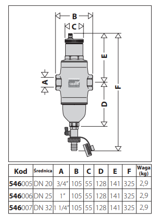 CALEFFI DISCALDIRTMAG 5/4″ MOSIĘŻNY 2 w 1 SEPARATOR POWIETRZA I MAGNETYCZNY (przyłącze 5/4″ GW) 546107