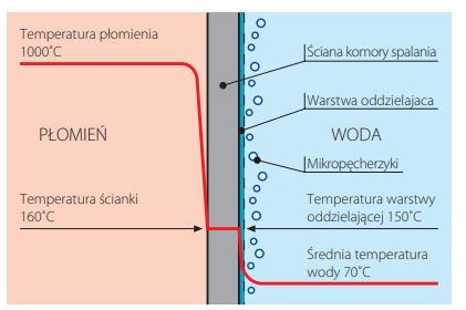 Mikropęcherzyki są formowane wsposób ciągły na powierzchni oddzielającej wodę od komory spalania. Powietrze przenoszone przez wodę gromadzi się w krytycznych punktach instalacji, skąd musi zostać usunięte. Część tego powietrza jest ponownie absorbowana.