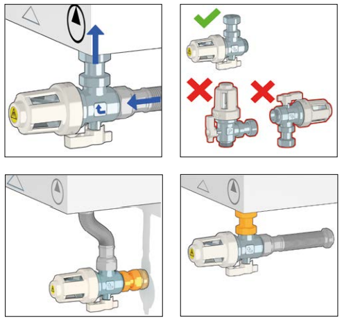 Urządzenie może być montowane tylko w pozycji poziomej. Dołączona złączka z ruchomą nakrętką ułatwia podłączenie urządzenia do kotła na przykład za pomocą przewodów elastycznych.
