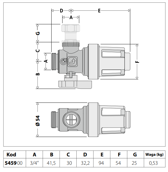CALEFFI XS 3/4″ KOMPAKTOWY SEPARATOR MAGNETYCZNY DO MONTAŻU POD KOTŁEM GAZOWYM 545900