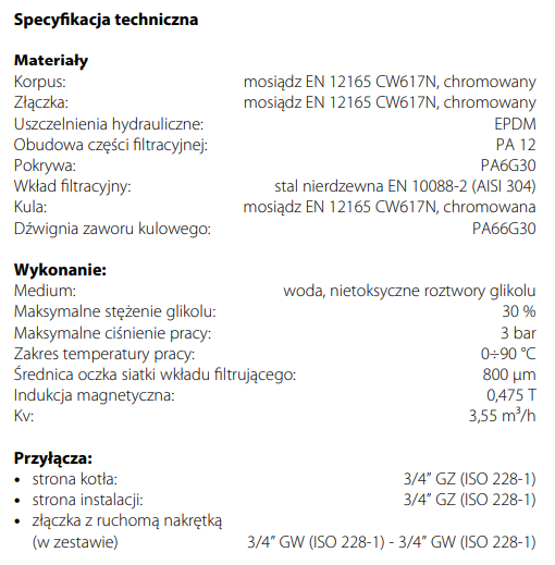 Urządzenie może być wykorzystane podczas płukania instalacji przy zastosowaniu dodatkowej złączki umożliwiającej podłączenia węża.