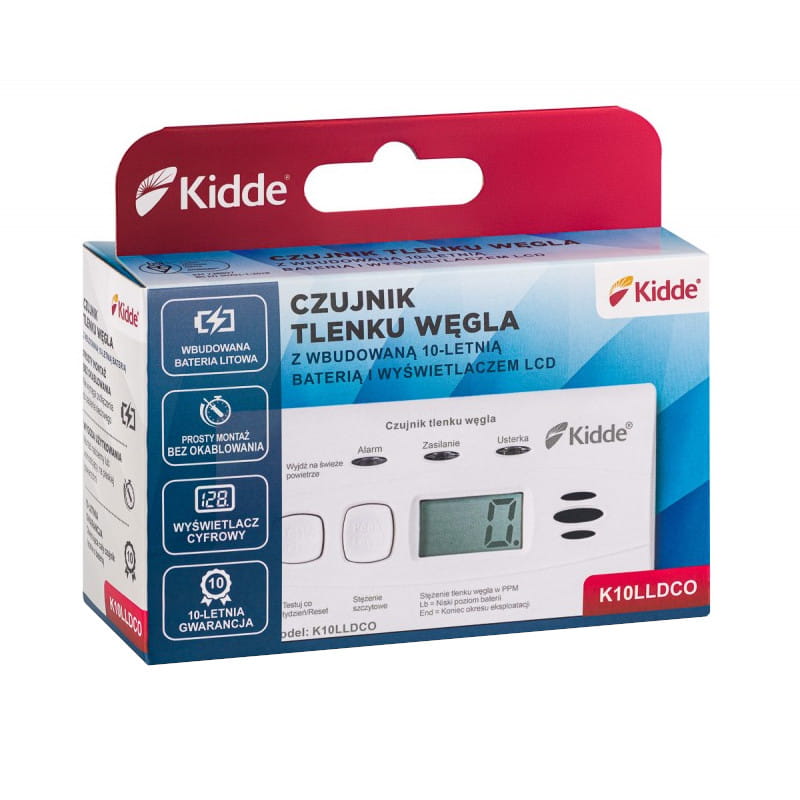 CZUJNIK CZADU Z WBUDOWANĄ 10-LETNIĄ BATERIĄ I WYŚWIETLACZEM LCD K10LLDCO FIRMY KIDDE