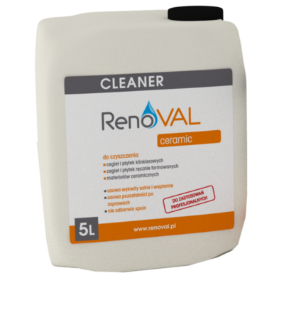 Renoval CleanerCeramicto specjalistyczny preparat (koncentrat) do usuwaniaz wszelkiego rodzaju nawierzchni ceramicznych, kamiennych wykwitów solnych i wapiennych, a także do usuwania pozostałości z klejów cementowych i zapraw murarskich, oraz typowych zabrudzeń użytkowych. Preparat można rozcieńczać wodą w takiej proporcji, jaka jest odpowiednia by środek nadal był skuteczny.