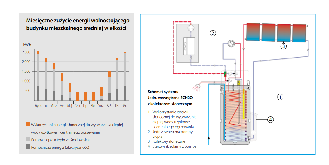 - Elektroniczne zarządzanie pompą ciepła i zbiornikiem buforowym ECH2O maksymalizuje efektywność energetyczną, zapewnia wygodne ogrzewanie i wytwarzanie ciepłej wody użytkowej