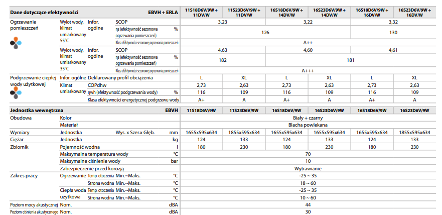 - efektywność ciepłej wody użytkowej aż do COP na poziomie 3,3 (EN16147)