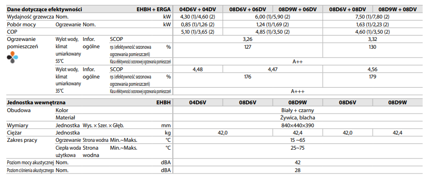 - efektywność ciepłej wody użytkowej aż do COP na poziomie 3,3 (EN16147)