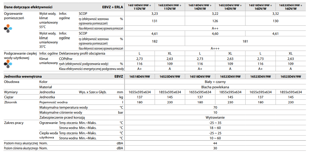 - efektywność ciepłej wody użytkowej aż do COP na poziomie 3,3 (EN16147)