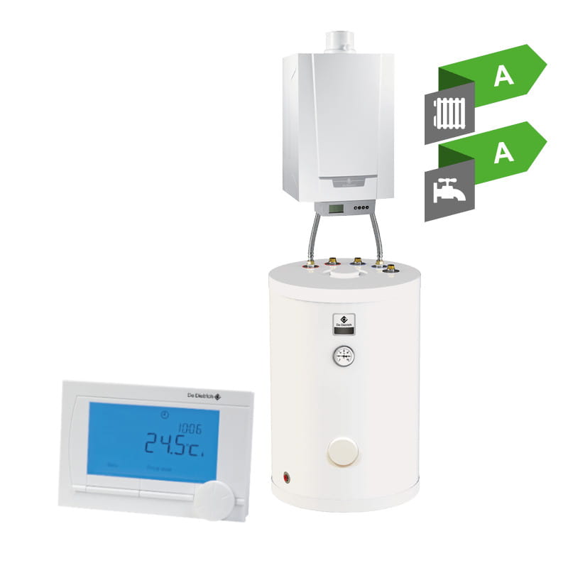 DE DIETRICH MCR3 EVO 24T/SRK150 JEDNOFUNKCYJNY WISZĄCY GAZOWY KOCIOŁ KONDENSACYJNY W PAKIECIE Z ZASOBNIKIEM C.W.U. 150 L I TERMOSTATEM ISENSE 7716670150KIS