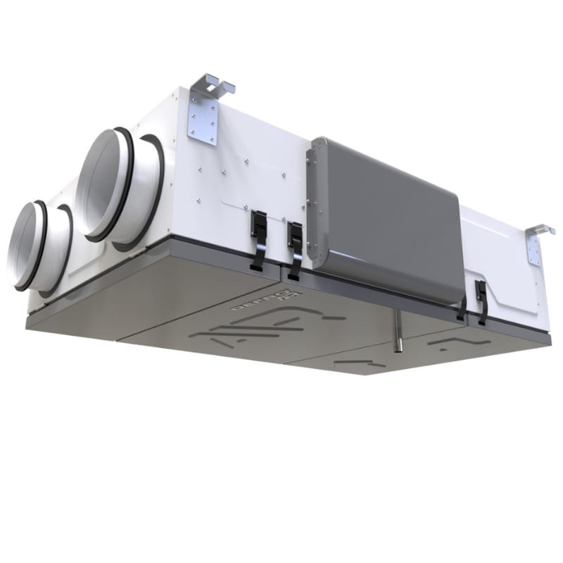 | Wyposażenie opcjonalne – za dopłatą | Moduł komunikacji internetowej ST-505 (LAN) lub moduł komunikacji internetowej WiFi RS. Dodatkowo możliwość wyposażenie w czujnik CO₂ i czujnik wilgotności HR oraz zestaw odpływu skroplin. Możliwość wykorzystania elementów do montażu sufitowego: konsola montażowa podwieszana do rekuperatora lub na podstawie pod rekuperator. |