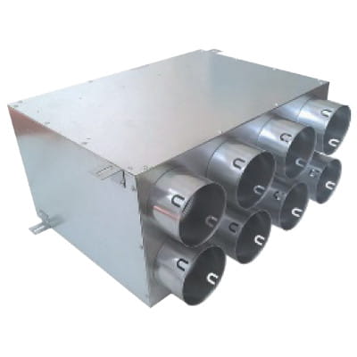 DEFRO AIR ROZDZIELACZ DWURZĘDOWY OŚMIO-KRÓĆCOWY IZOLOWANY Z KLAPĄ 8×90/200D ik