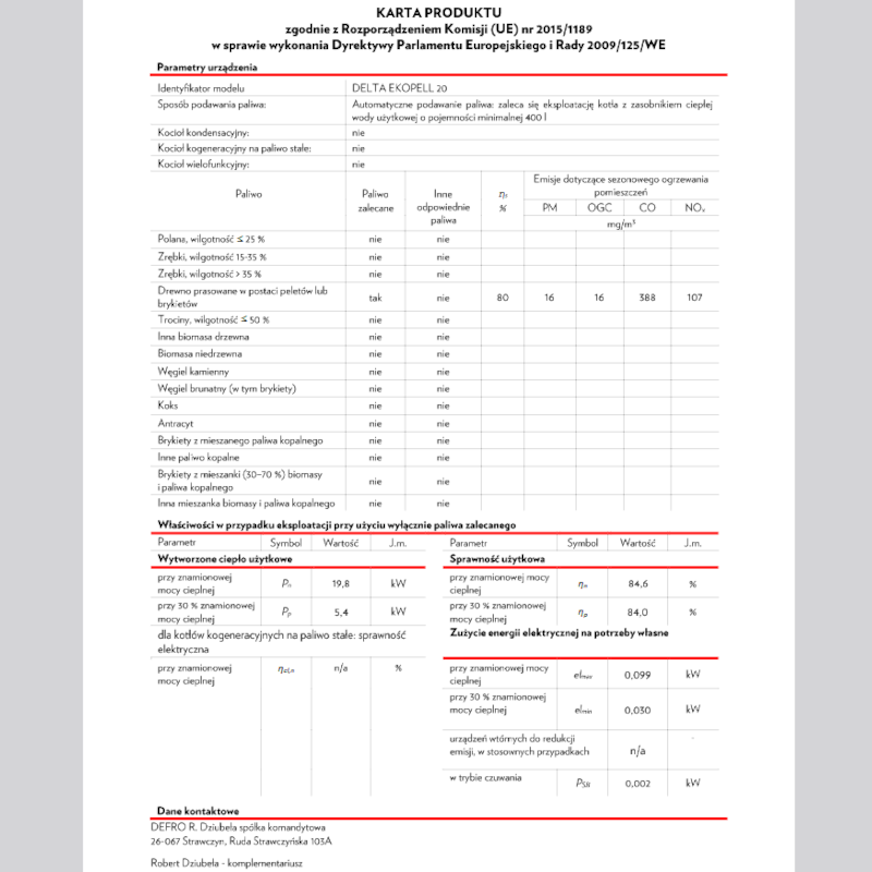 | Symbol producenta | DELTA EKOPELL 20 |