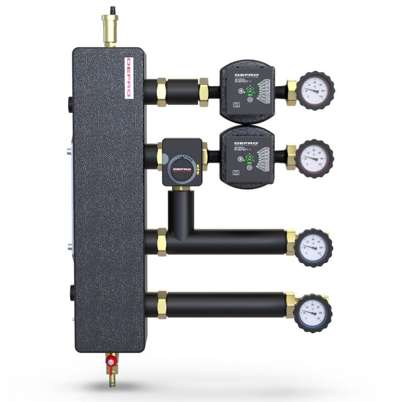 System DES to eneregooszczędny gotowy zestaw grup pompowych dedykowany do obsługi dwóch obiegów grzewczych. Zestawy DES zostały wyposażone w wysokowydajne pompy obiegowe DEFRO ECOFLOW ENERGY PLUS o szerokim zakresie regulacji. Standardowym wyposażeniem każdej z 3 wersji są odpowietrznik, zawór spustowy, a także zawory kulowe z termometrami z funkcją zaworu zwrotnego na powrocie i studzienką pod czujnik temperatury po stronie zasilającej (tylko w grupach mieszających). Izolacja sprzęgła i pomp wykonana jest z EPP, a rur powrotnych i zasilających ze spienionego EPDM co zapobiega nadmiernemu wychładzaniu się czynnika grzewczego. Sprzęgło hydrauliczne wyposażone jest w separator zanieczyszczeń. Konsola montażowa w zestawie.