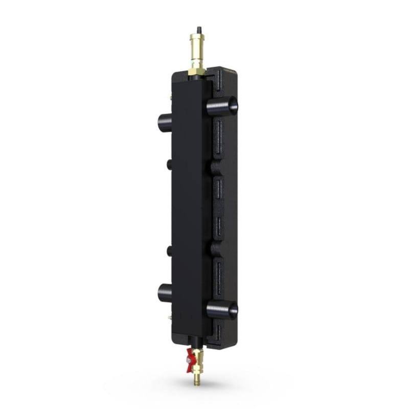 Sprzęgła DSH wykonane są ze stali. Wyposażone są w izolację EPP, króćce ½’’ dla podłączenia odpowietrznika, zaworu spustowego lub czujnika temperatury i separatora magnetycznego.