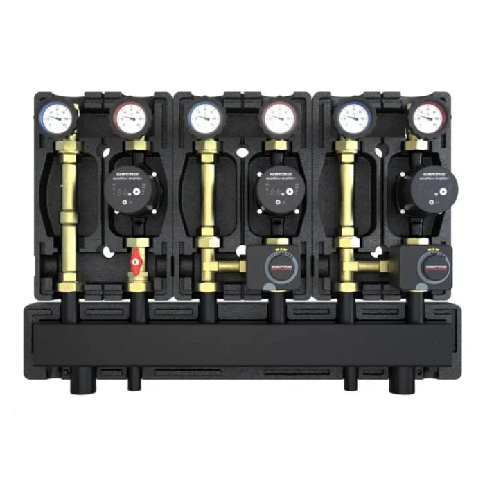 DEFRO DZGP-ECF-07 GOTOWY ZESTAW POMPOWY TRÓJOBIEGOWY Z ROZDZIELACZEM – 1X GRUPA BEZPOŚREDNIA, 2X GRUPA MIESZAJĄCA – POMPY DEFRO ECOFLOW ENERGY