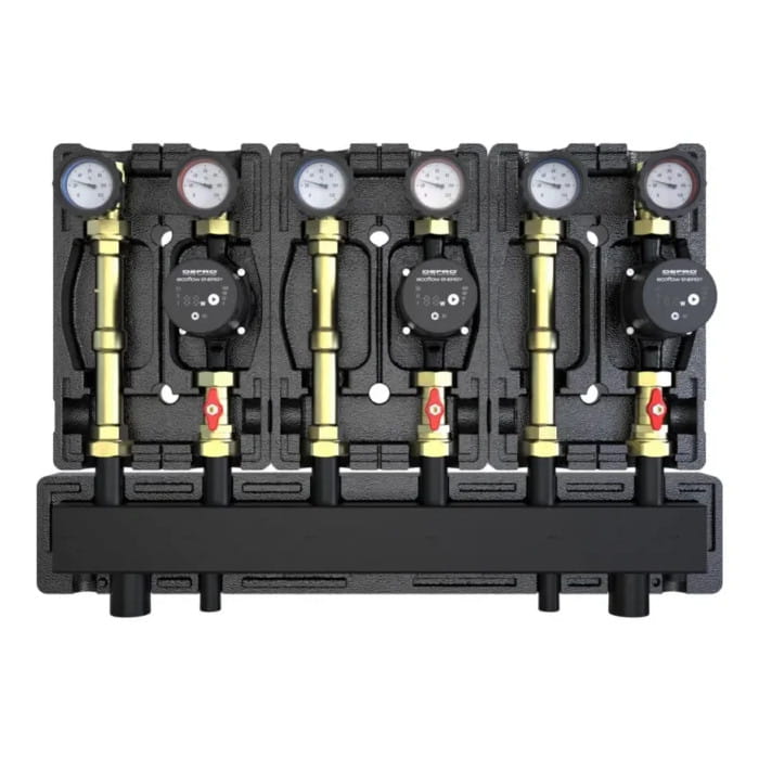 DEFRO DZGP-ECF-09 GOTOWY ZESTAW POMPOWY TRÓJOBIEGOWY Z ROZDZIELACZEM – 3X GRUPA BEZPOŚREDNIA – POMPY DEFRO ECOFLOW ENERGY