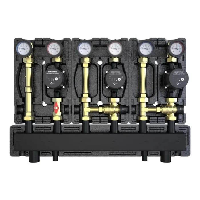 DEFRO DZGP-ECF-11 GOTOWY ZESTAW POMPOWY TRÓJOBIEGOWY Z ROZDZIELACZEM – 1X GRUPA BEZPOŚREDNIA, 2X GRUPA Z ZAWOREM TERMOSTATYCZNYM – POMPY DEFRO ECOFLOW ENERGY