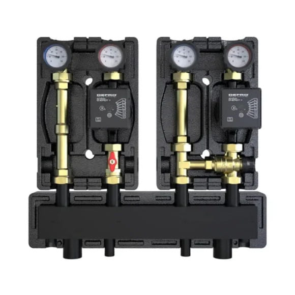 DEFRO DZGP-ECFP-02-SR GOTOWY ZESTAW POMPOWY DWUOBIEGOWY ZE SPRZĘGŁO-ROZDZIELACZEM – 1X GRUPA BEZPOŚREDNIA, 1X GRUPA Z ZAWOREM TERMOSTATYCZNYM – POMPY DEFRO ECOFLOW ENERGY PLUS