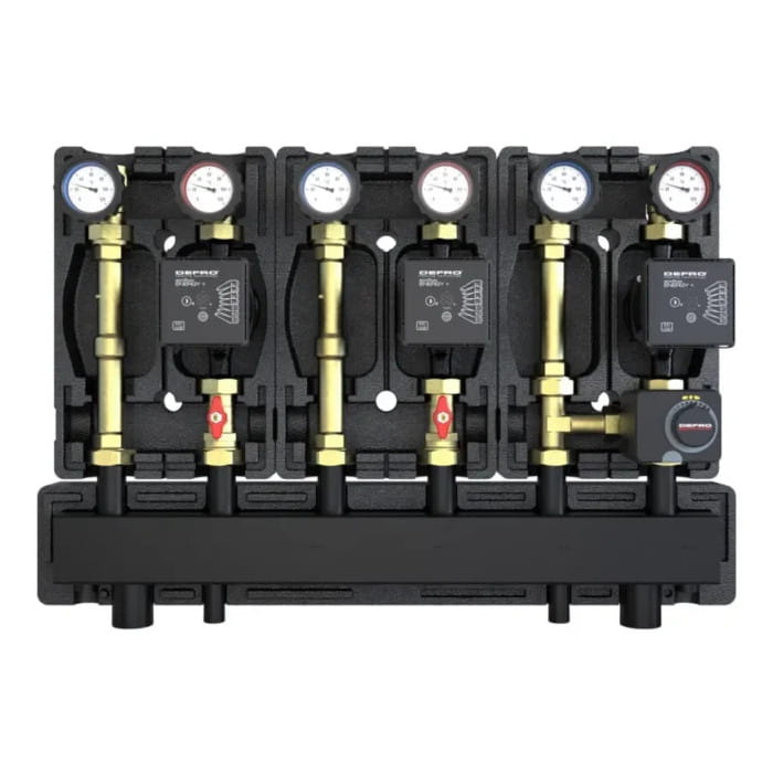 DEFRO DZGP-ECFP-06 GOTOWY ZESTAW POMPOWY TRÓJOBIEGOWY Z ROZDZIELACZEM – 2X GRUPA BEZPOŚREDNIA, 1X GRUPA MIESZAJĄCA – POMPY DEFRO ECOFLOW ENERGY PLUS