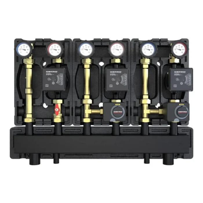 DEFRO DZGP-ECFP-07 GOTOWY ZESTAW POMPOWY TRÓJOBIEGOWY Z ROZDZIELACZEM – 1X GRUPA BEZPOŚREDNIA, 2X GRUPA MIESZAJĄCA – POMPY DEFRO ECOFLOW ENERGY PLUS