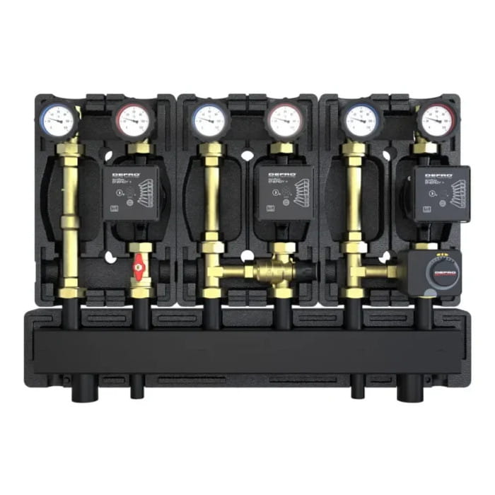 DEFRO DZGP-ECFP-13 GOTOWY ZESTAW POMPOWY TRÓJOBIEGOWY Z ROZDZIELACZEM – 1X GR. BEZPOŚREDNIA, 1X GR. MIESZAJĄCA, 1X GR. Z ZAWOREM TERMOSTATYCZNYM – POMPY DEFRO ECOFLOW ENERGY PLUS