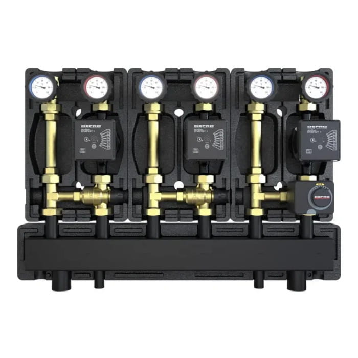 DEFRO DZGP-ECFP-15 GOTOWY ZESTAW POMPOWY TRÓJOBIEGOWY Z ROZDZIELACZEM – 2X GRUPA Z ZAWOREM TERMOSTATYCZNYM, 1X GRUPA MIESZAJĄCA – POMPY DEFRO ECOFLOW ENERGY PLUS