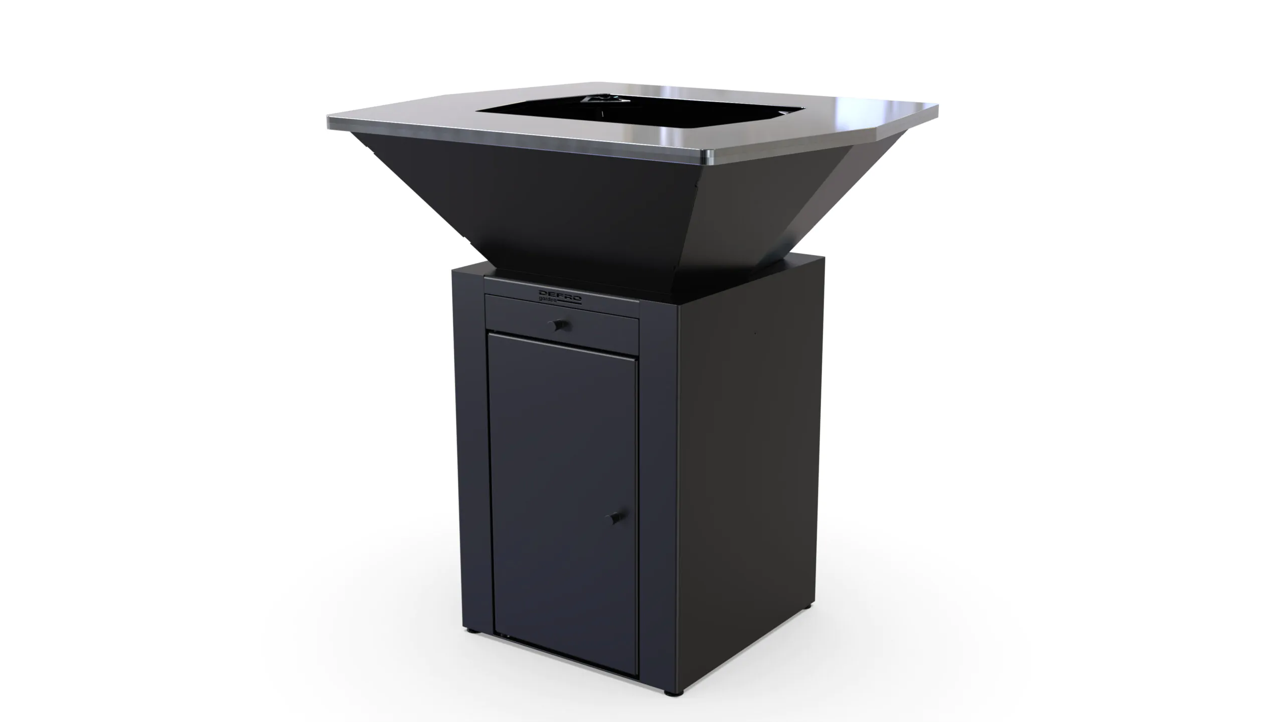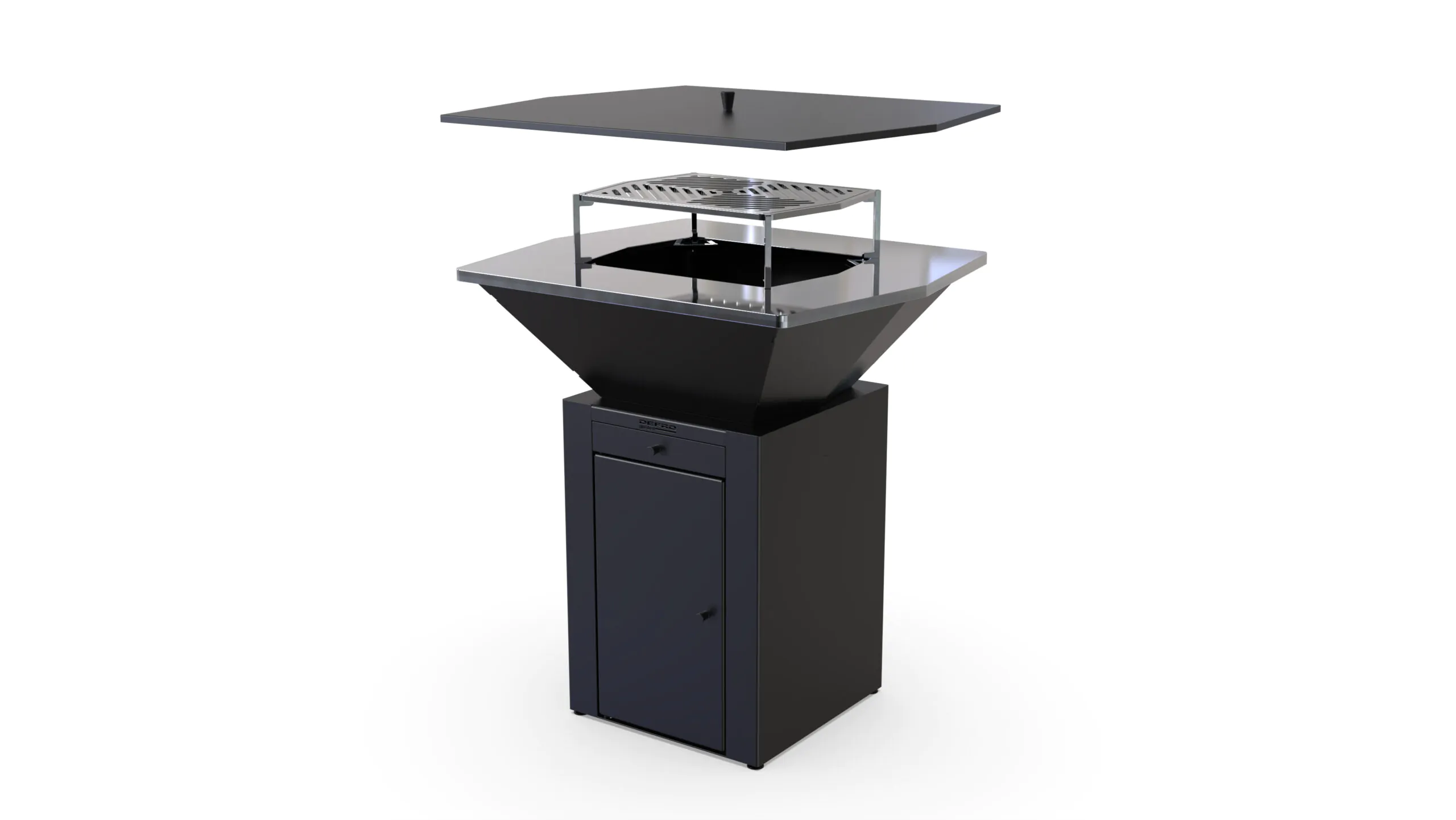 Podstawa paleniska z zamkniętą szafką pozwoli Ci wygodnie przechowywać akcesoria grillowe, a wysuwana szuflada to szybki sposób na pozbycie się popiołu. Dodatkowy ruszt pozwoli Ci na grillowanie bezpośrednio nad ogniem, natomiast pokrywa ułatwi ochronę płyty grzewczej przed wpływem pogody.