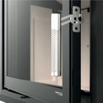 ( Opcja zamontowania klamki do drugiej stronie drzwiczek przy wkładach kominkowych Defro Home, Opcja niedostępna przy wkładach z bocznym przeszkleniem ).