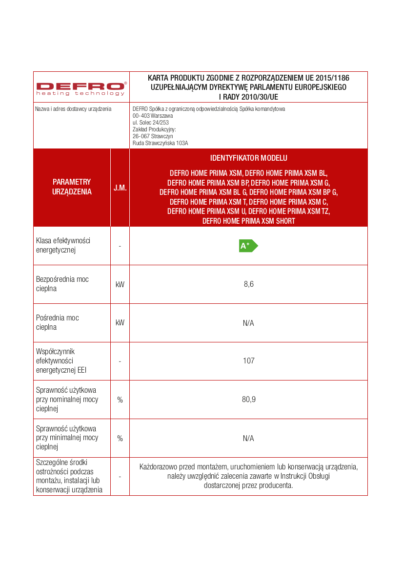 | Wyposażenie | - nawiew powietrza na szybę - wymienna tylna płyta - ogranicznik drewna - ruszt uszczelka z pamięcią kształtu |
