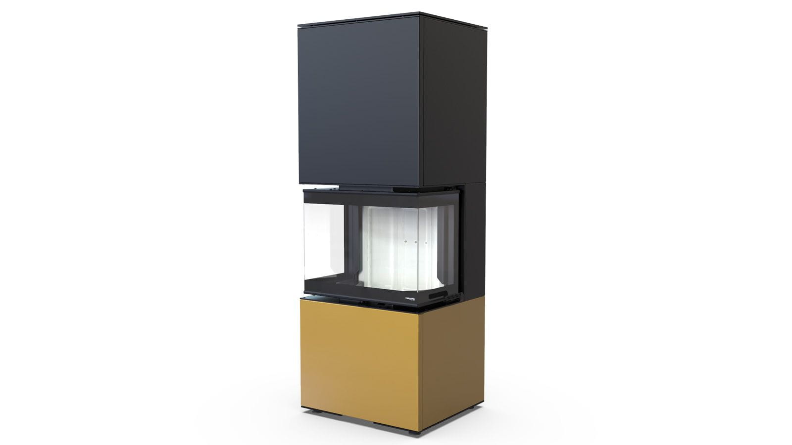 Trzyszybowy kominek posiada innowacyjny system zamykania drzwiczek zapewniający odpowiedni komfort: otwierania i zamykania oraz szczelność paleniska. Autorska konstrukcja paleniska wyposażona w system dwóch deflektorów wydłużających drogę spalin. Zastosowano w nimrównież precyzyjne rozwiązanie doprowadzenia powietrza do spalenia – Multiflow. Kominekwyposażony jest w wysokiej jakości spiek ceramiczny z sitodrukiem o odporności do 750°C – Black Line. Okładziny paleniska są z trwałego Ceramitonu w dwóch odcieniach: jasnym i czarnym. Jakość zastosowanych materiałów i konstrukcja urządzenia pozwala na spełnienie restrykcyjnych, europejskich norm ekologicznych.