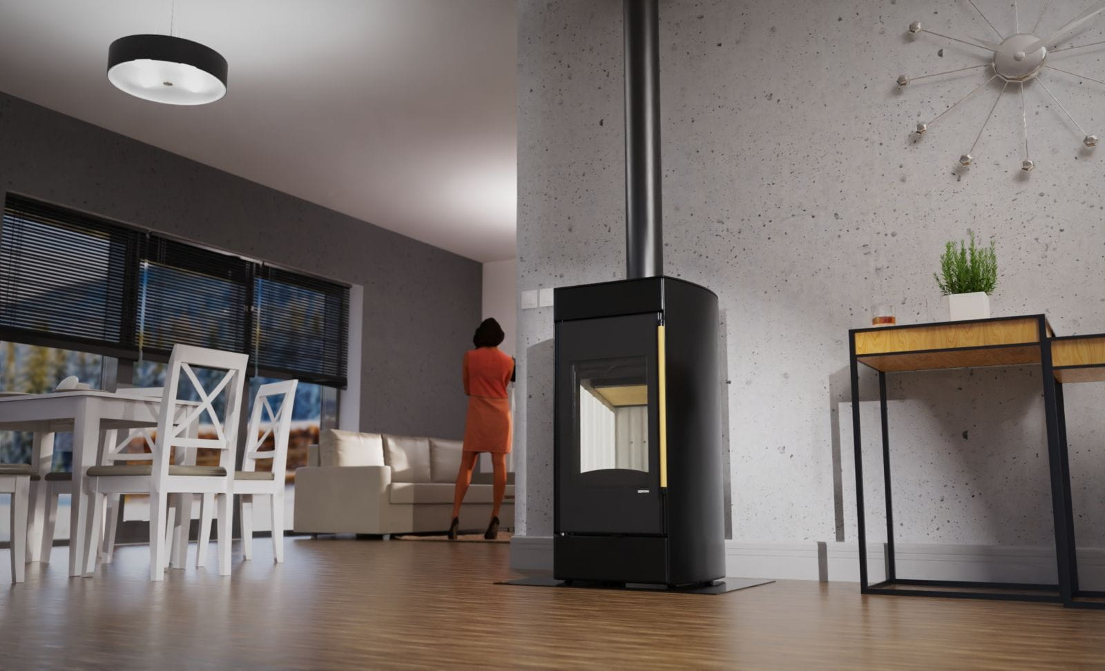 - Okładziny paleniska z trwałego Ceramitonu w dwóch odcieniach: jasny i czarny